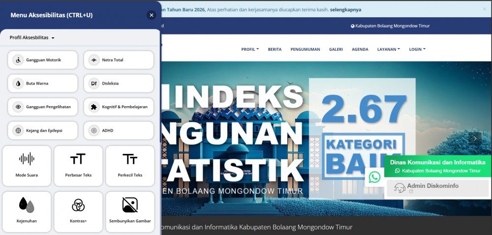 Tutuyan - Pemerintah Kabupaten Bolaang Mongondow Timur melalui Dinas Komunikasi dan Informatika terus memperkuat layanan informasi publik berbasis digital yang ramah dan inklusif. Salah satu langkah konkret yang dilakukan adalah penyediaan fitur WhatsApp dan fitur aksesibilitas di seluruh website Organisasi Perangkat Daerah (OPD).